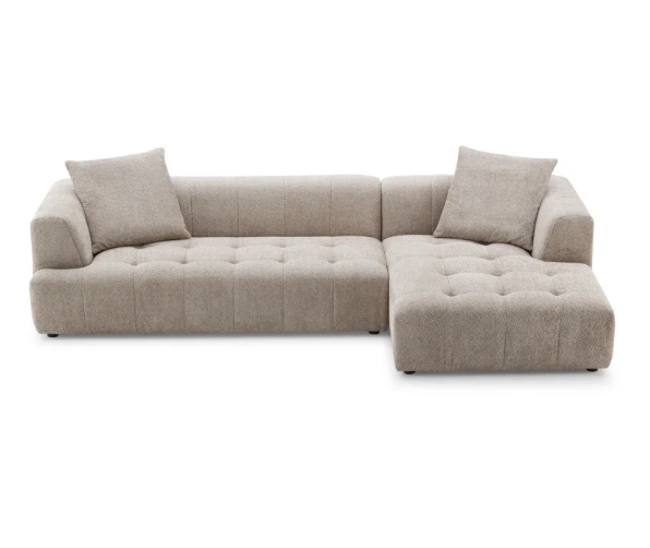 Experimenta el máximo confort y la elegancia contemporánea con el sofá seccional JAZMINA. Su diseño en forma de L, con una estructura robusta de madera, redefine la comodidad en tu hogar.