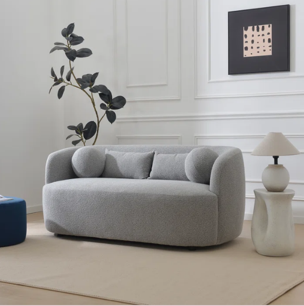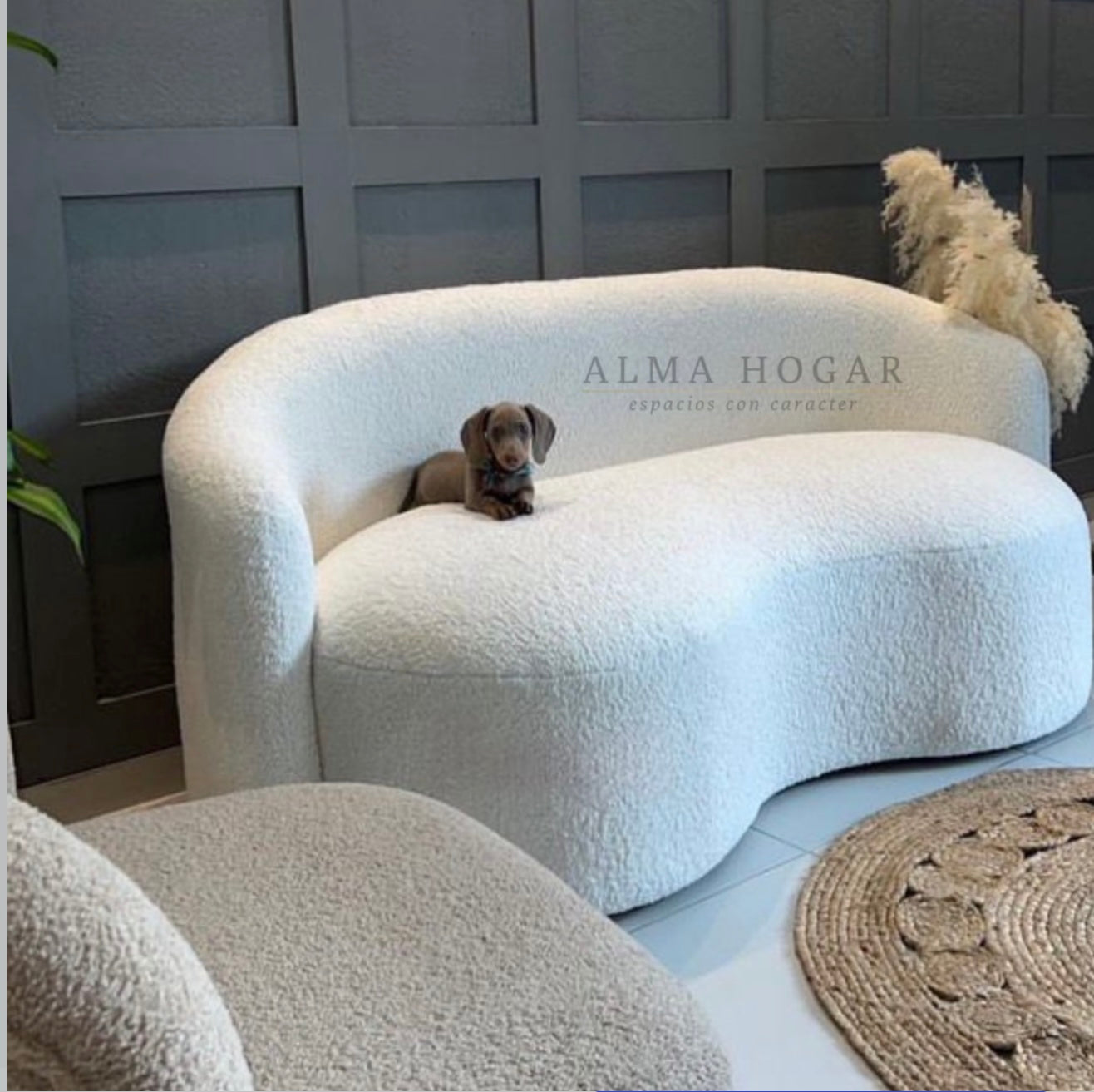 El tapizado bouclet, con su textura rizada y acogedora, añade un toque de sofisticación y calidez a este diseño excepcional.