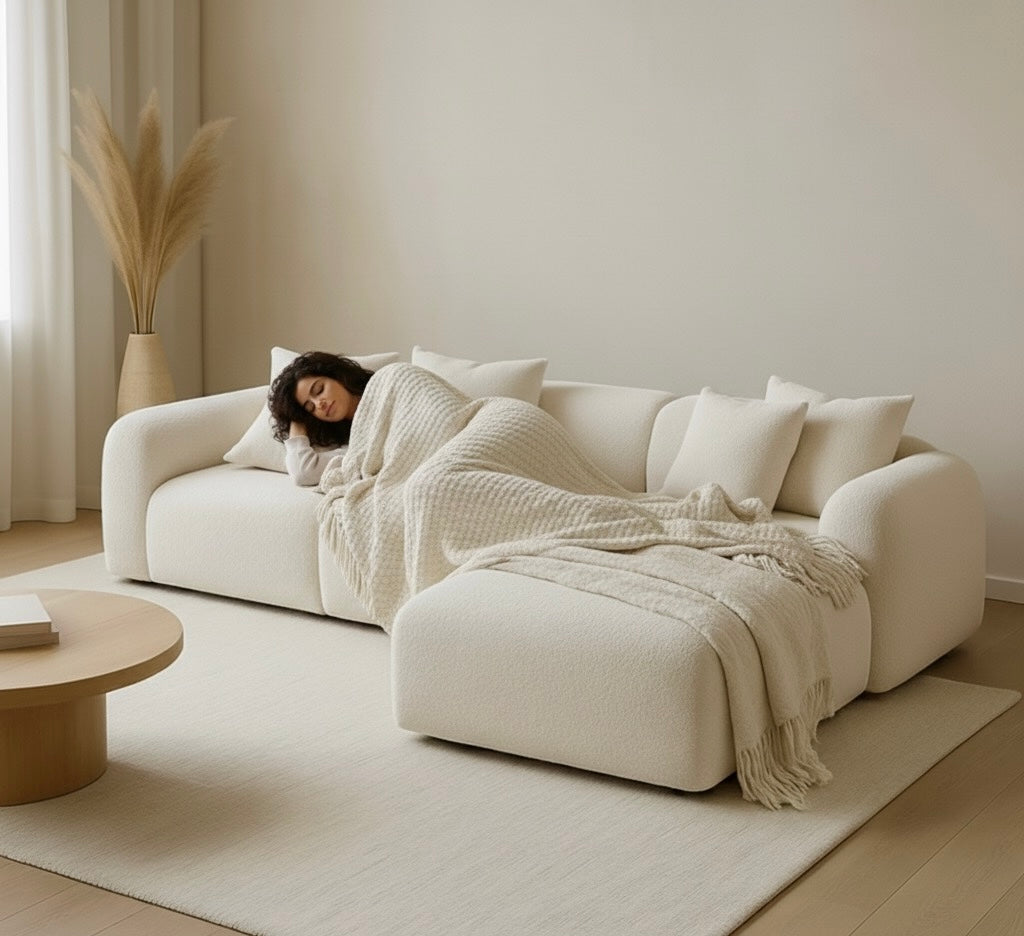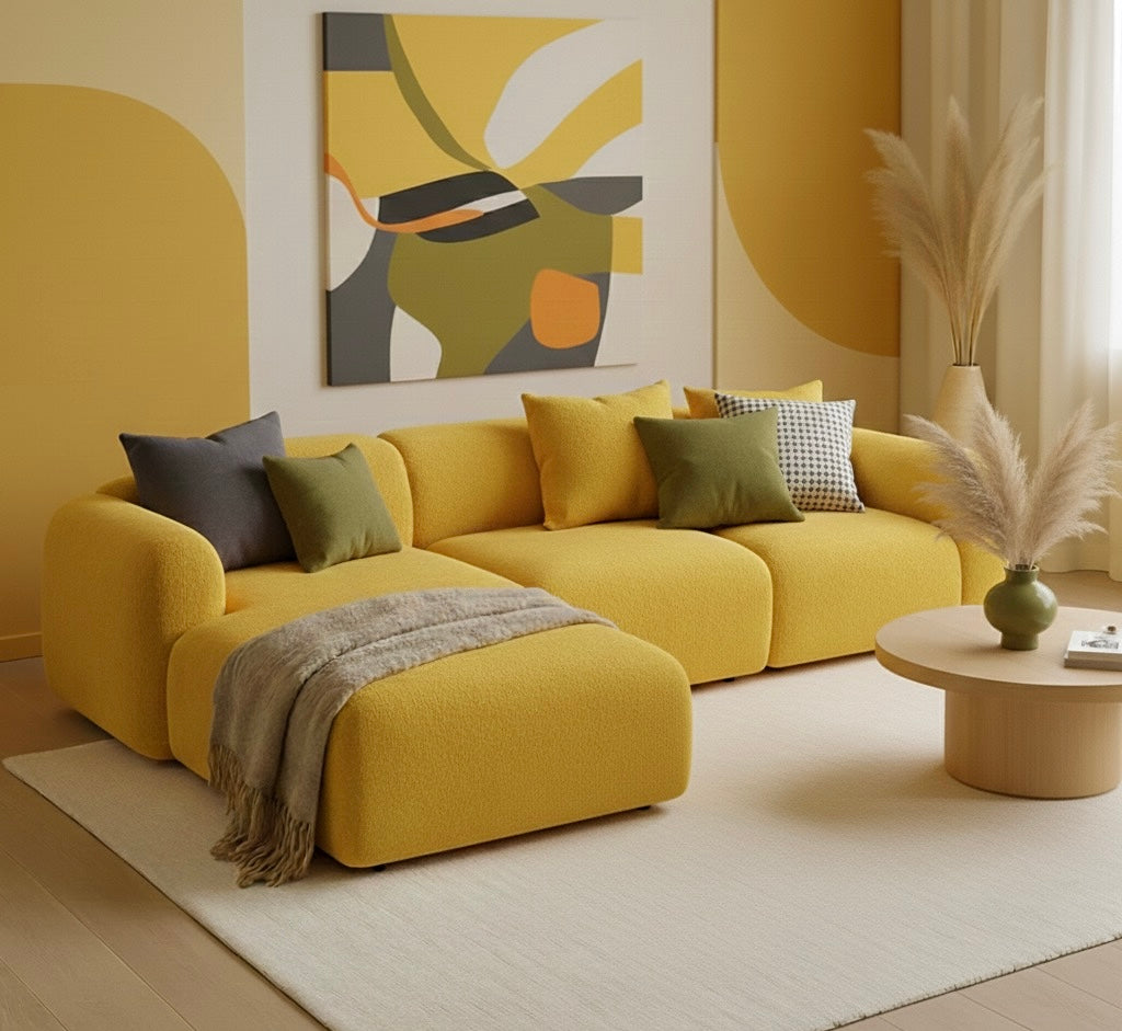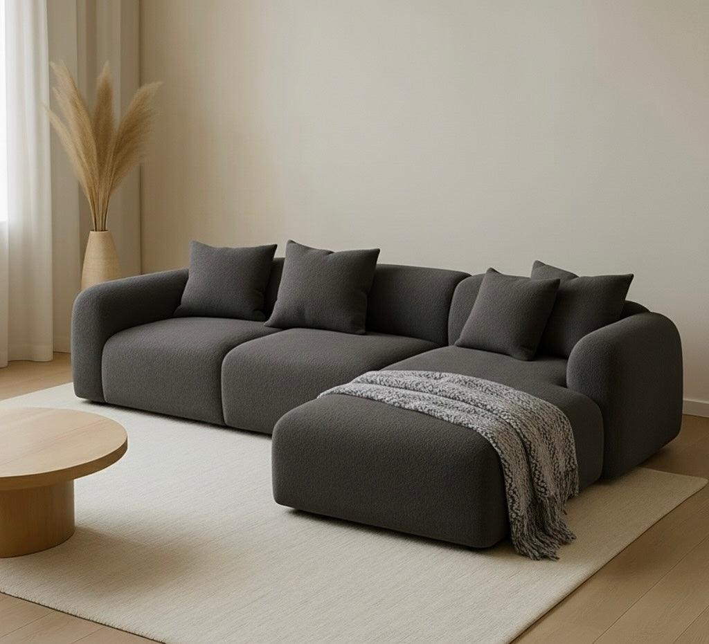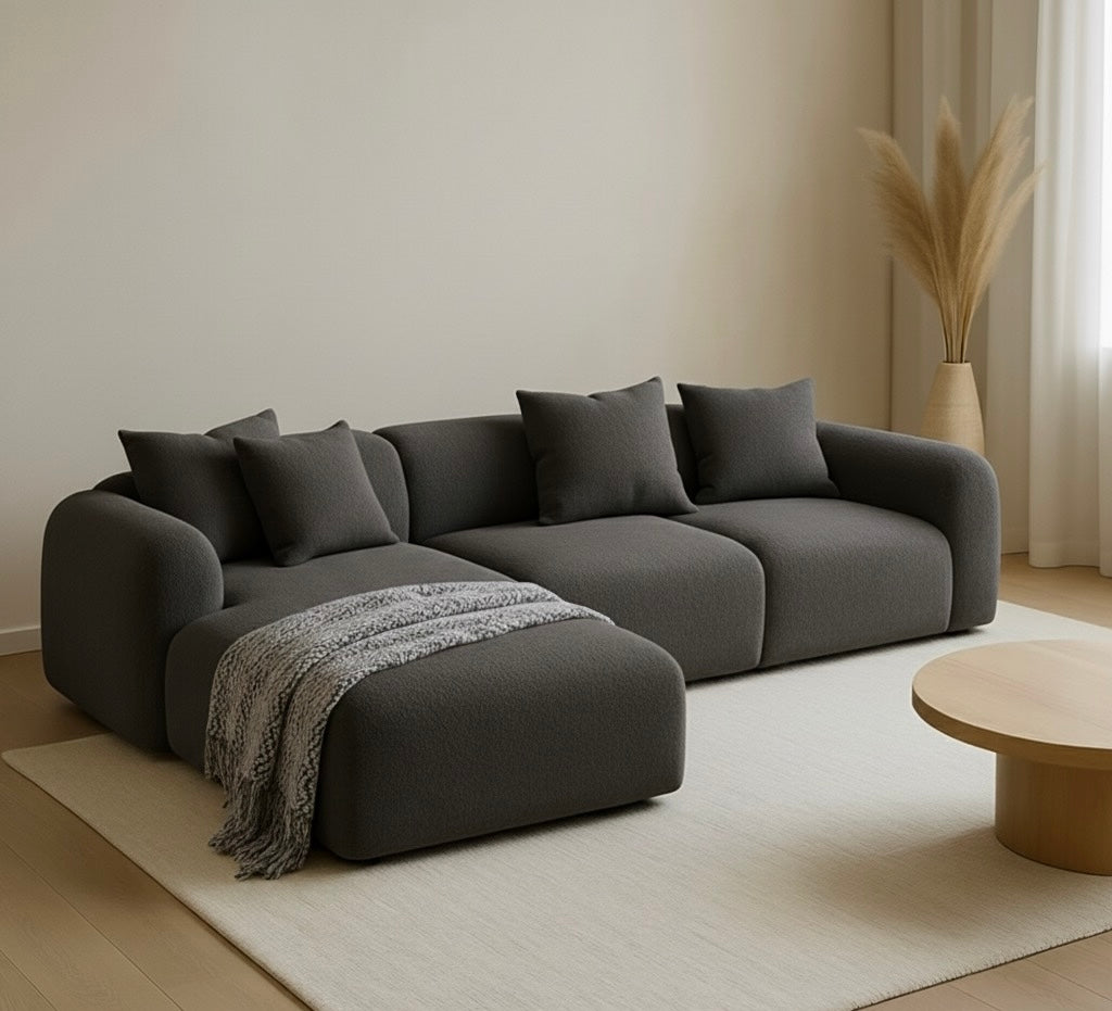 Disfruta de la máxima relajación y diseño moderno con nuestro Sofá Modular Seccional. Su diseño de líneas suaves y voluminosas lo convierte en la pieza central perfecta para cualquier sala de estar contemporánea.