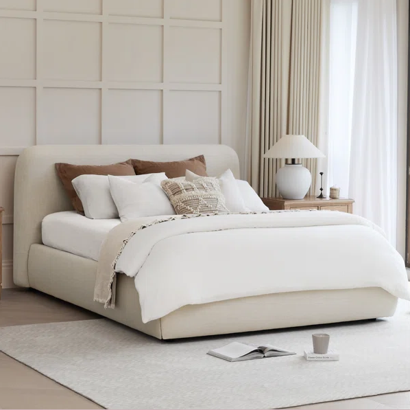 Sumérgete en un mundo de confort y estilo con nuestra cama tapizada ALBA . Diseñada con líneas suaves y una silueta acogedora, esta cama se convierte en el refugio perfecto para tus momentos de descanso.