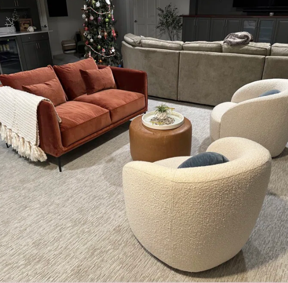 Tiene una estructura de madera maciza y de ingeniería que descansa sobre patas cónicas de soporte en las esquinas, para una silueta aerodinámica llena de estilo de mediados de siglo. Los cojines y los brazos cuadrados están densamente tapizados con bordes ribeteados, y el interior está generosamente acolchado para brindar mucho soporte. El capitoné acanalado a lo largo de la parte exterior del respaldo completa el look con distinción. También se incluyen dos cojines decorativos para otra capa de comodidad.